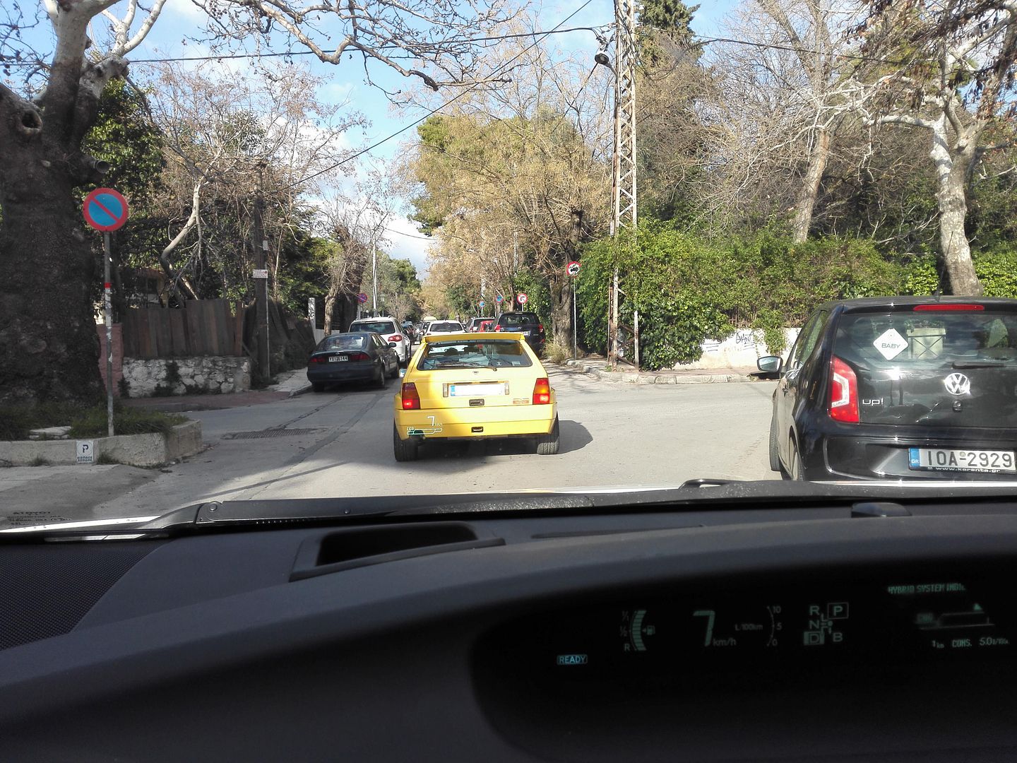 Aston Martin Cygnet, λευκό περλέ στο Λιμάνι Ραφήνας και Hyundai Veloster μαύρο στη διαστάυρωση Καβάλας & Κηφισού. Και τα δυο με ελληνικότατες πινακίδες (ειδικά το Veloster μου έκανε εντύπωση γιατί δεν εισάγεται κανονικά από το Δάβαρη).