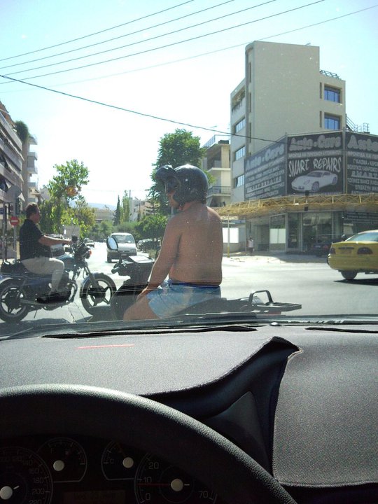 Έχω δεί παρόμοιο περιστατικό αλλά ο «δικός» μου ΔΕΝ φόραγε κράνος και αντί για σόρτς φόραγε ΣΛΙΠ...