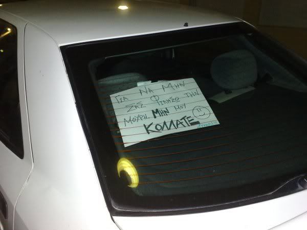 Μπαινω μεσα, καλω την αστυνομια(πιο πολυ για το τυπικο), και αρχιζω να κοβω βολτες κοιτοντας το αμαξι, μιας και ηταν με το τζαμι ανοιχτο