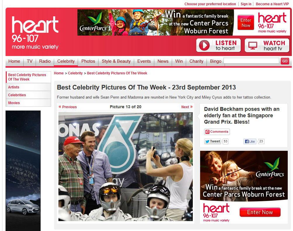 Seriously, the LEAST the person who wrote this should do is apologise for their CRASS mistake. And the next time around, PLEASE do some research on who the people are, before you write crap as 'David Beckham with elderly fan'. It might as well have been Niki Lauda with a young fan.