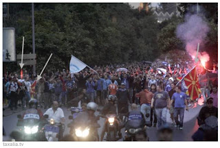 Να σημειωθεί ότι στην πορεία εθεάθησαν αρκετοί που κρατούσαν σημαίες των Σκοπίων, καθώς είναι γνωστή η 'προειδοποίηση' των οπαδών της ομάδας της Θεσσαλονίκης ότι αν δεν εγκριθεί η αίτηση αδειοδότησης της, θα επιδιώξουν να συμμετέχει στο πρωτάθλημα της γείτονας χώρας ως ένδειξη διαμαρτυρίας.