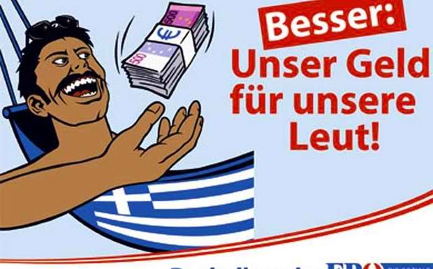 αυτη η αφισα ερχεται απο την Αυστρια, απο τον δικο τους ΛΑΟΣ, ενα κομμα που πιανει κοντα 20%. Ο μεσος Αυστριακος (Φινλανδος, Γερμανος, Σλοβακος, Γαλλος, Ολλανδος κοκ) που αντιπαθει τον μουσουλμανο Τουρκο (Πακιστανο, Σομαλο κοκ) εξισου αντιπαθει και τον Ελληνα. Στερεοτυπα; Οσο στερεοτυπο ειναι οτι οι μουσουλμανοι ειναι φονταμενταλιστες που παιρνουν σκαλπς κραυγαζοντας Αλλαχ Ακμπαρ, αλλο τοσο ειναι και ο φοροφυγας/τεμπελης/απατεωνας/μαυριδερος/τριχωτος Ελληνας. Και ξερεις, αυτοι οι Ευρωπαιοι δεν τα εχουν με το Πακισταν, αλλα με τους Πακιστανους στην Ευρωπη. Εμας μας μισουν συνολικα ως χωρα, ως λαο, γιατι οπως το βλεπουν, μας ταϊζουν ολους.