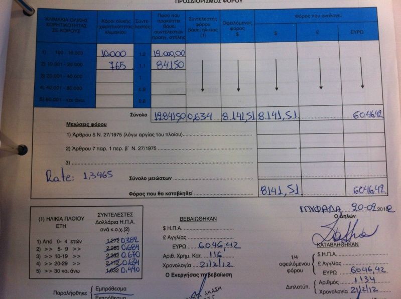 Αλλα και εδω το δαιμονιο του ελληνικου κρατους βρηκε τροπο να συνεχισει να εισπρατει φορους. Για καθε πλοιο που φερει την ελληνικη σημαια πρεπει να καταβαλεται φορος περαν των ελληνων ναυτικων και για τους υπολοιπους ναυτικους ανεξαρτητα της εθνικοτητας τους, αλλα βαση του αξιωματος τους (ie τα κατωτατα μελη δεν πληρωνουν).